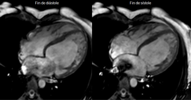 Mediante secuencias morfológicas (spin echo) y funcionales de cine-RM (gradient echo), proporciona información precisa acerca de: